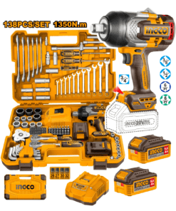 Combo 138 Herramientas + Llave de Impacto Inalámbrica 1350NM + 2 Baterías 5AH + Cargador Rápido