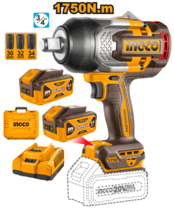 Llave de Impacto Inalámbrica 1750NM + 2 Baterías 8AH + Cargador Rápido