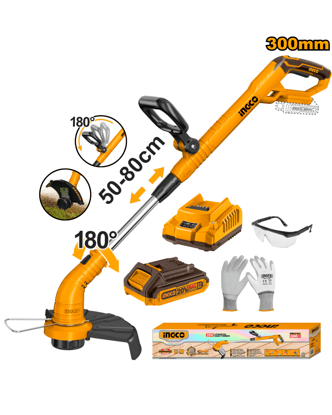 Bordeadora Orilladora Inalámbrica 20V + Batería 2AH + Cargador INGCO CGTLI20301