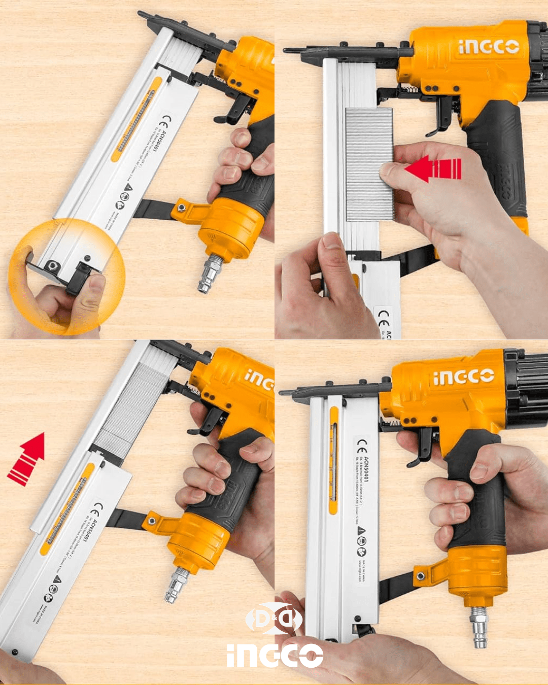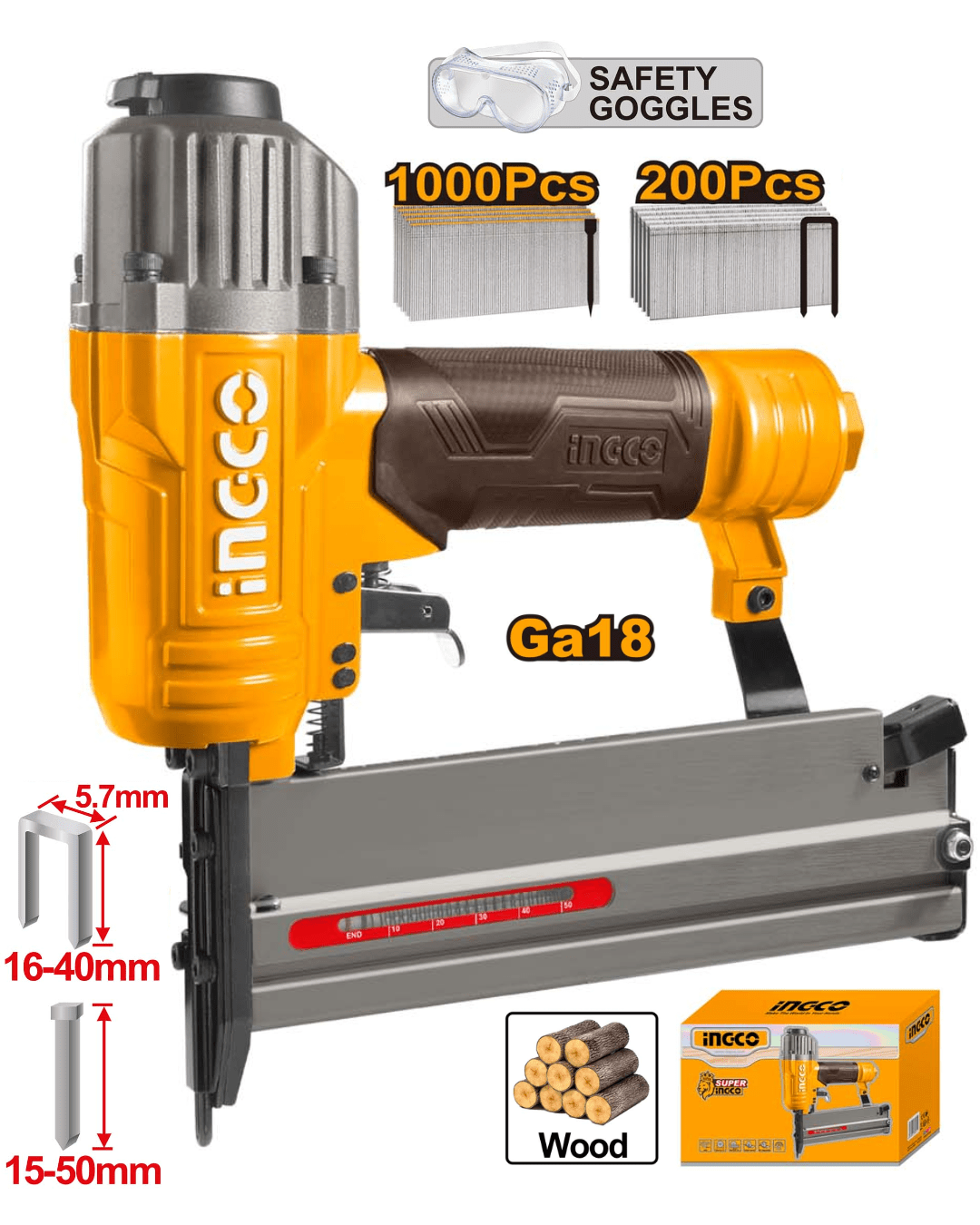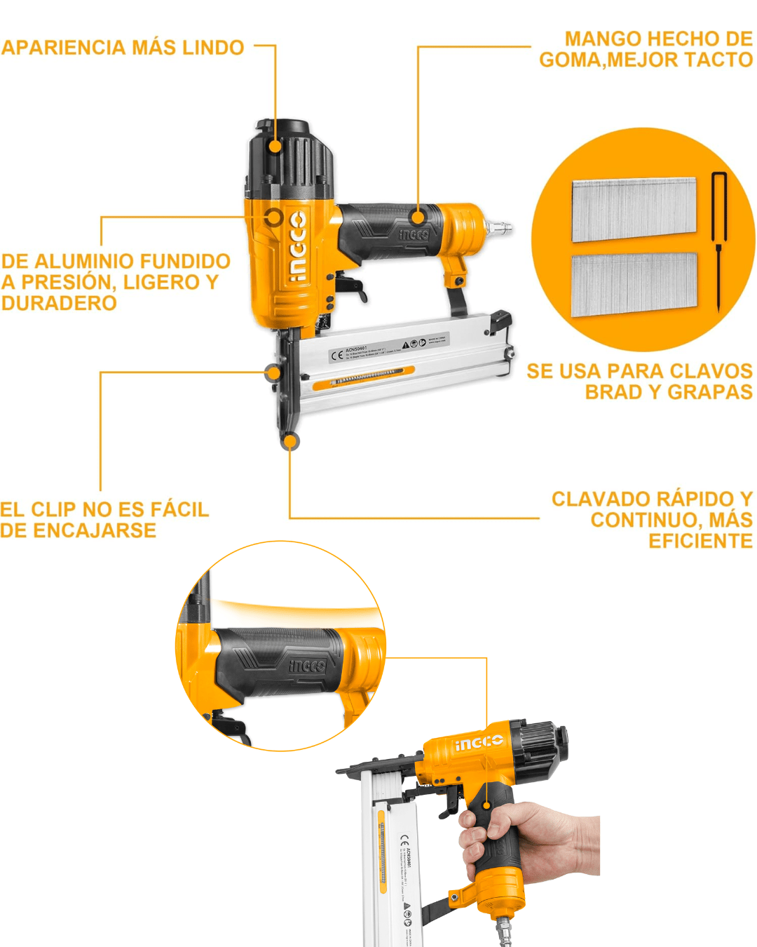 Clavadora / Engrapadora Neumática 2 en 1 INGCO ACN50401