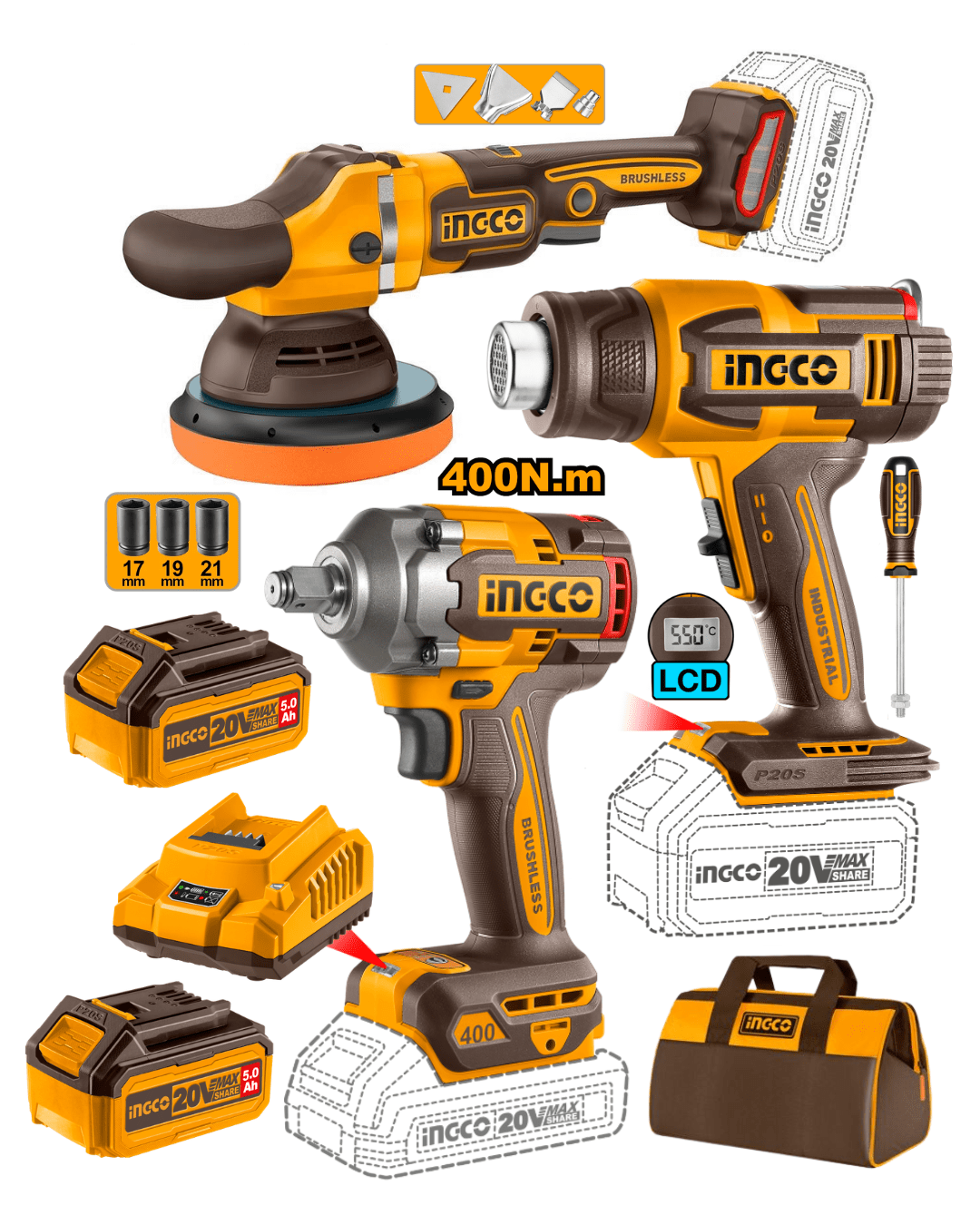 Este kit combina tres herramientas inalámbricas de alto rendimiento y accesorios esenciales, ideales para trabajos de precisión y proyectos profesionales. Con motores sin carbones para mayor durabilidad y eficiencia, cada herramienta ofrece características avanzadas como control de velocidad variable, diseño ergonómico, y potencia suficiente para tareas exigentes. Las baterías de 5Ah y el cargador rápido garantizan tiempos de trabajo prolongados y recargas rápidas, mientras que el bolso de carga facilita el transporte y almacenamiento.