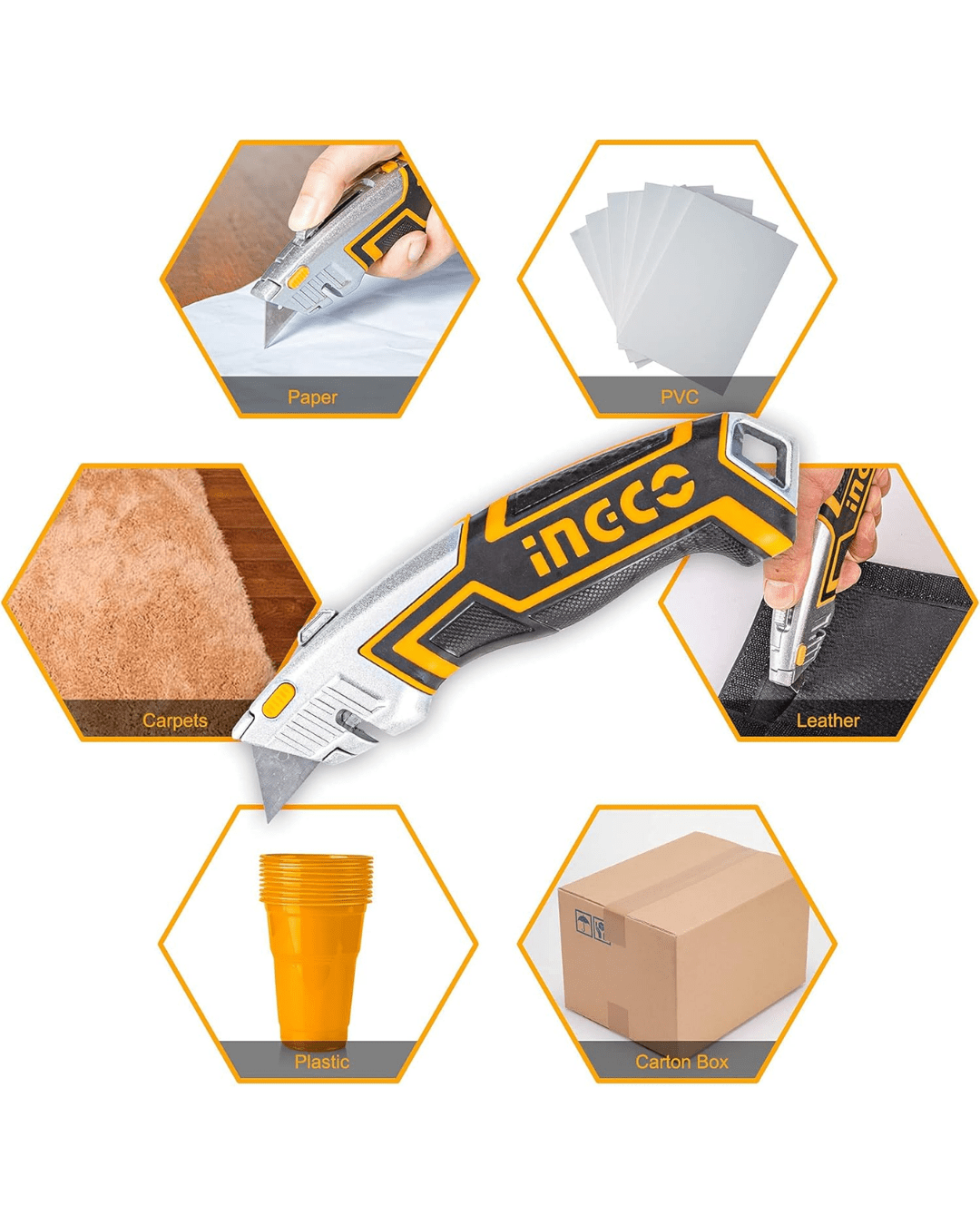 Herramienta práctica y resistente diseñada para cortes precisos en cartón, plásticos y materiales de embalaje. Su cuchilla de acero SK5 ofrece mayor durabilidad y filo prolongado, ideal para uso continuo en bodegas, talleres y trabajos de oficina. El diseño ergonómico facilita el manejo y mejora el control durante el corte, mientras que el set de repuestos permite mantener la herramienta siempre lista para usar.