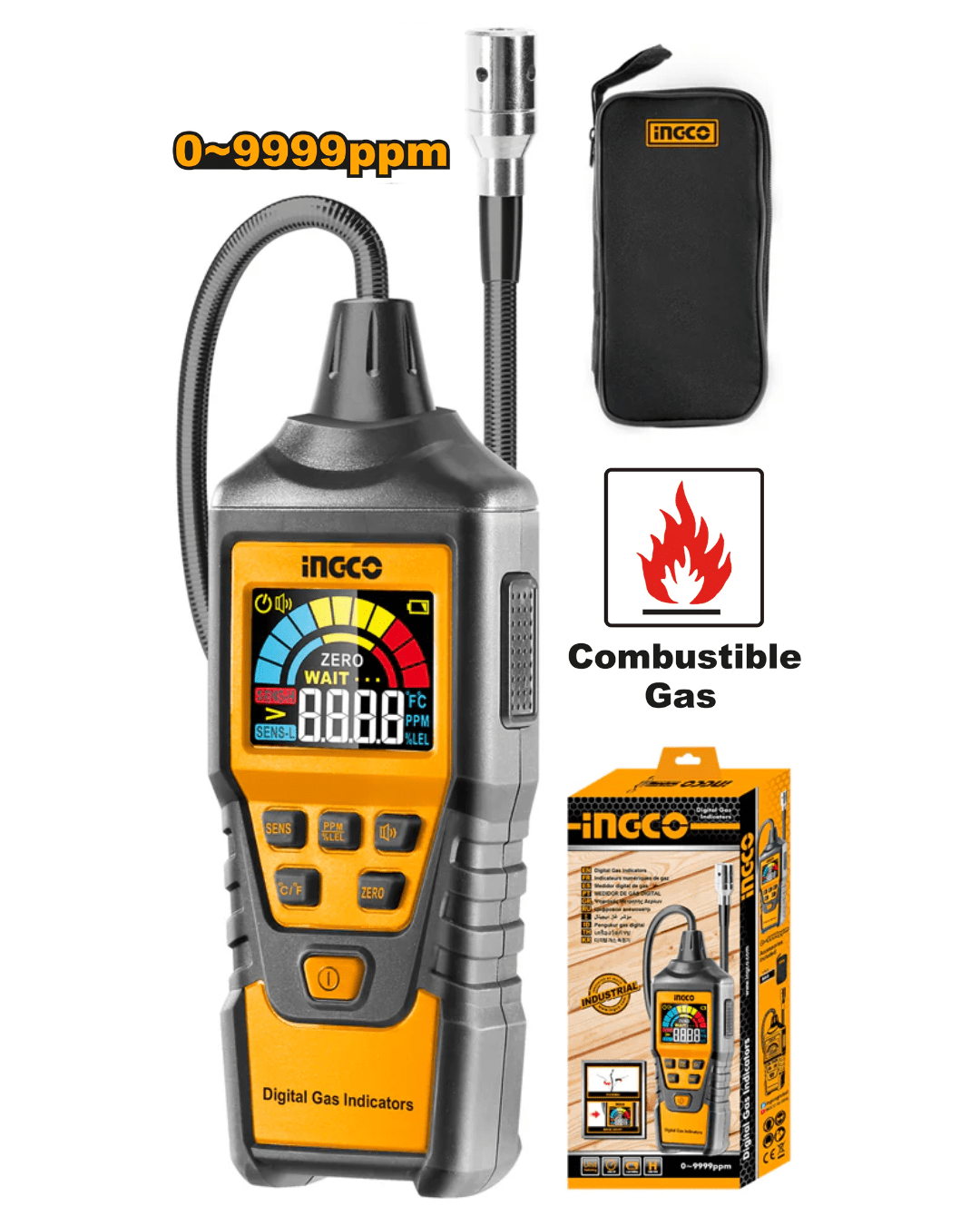 Dispositivo profesional de alta sensibilidad, diseñado para detectar de forma rápida y precisa fugas de gas metano y otros gases combustibles en instalaciones domésticas, industriales y vehículos. Equipado con una sonda flexible de 450 mm y pantalla LCD clara, permite alcanzar zonas difíciles y visualizar las mediciones fácilmente. Su respuesta rápida y alta sensibilidad lo convierten en una herramienta indispensable para técnicos, instaladores de gas, mecánicos y especialistas en mantención preventiva. Ideal para garantizar la seguridad en sistemas de gas domiciliarios, redes industriales o revisiones de vehículos a gas.