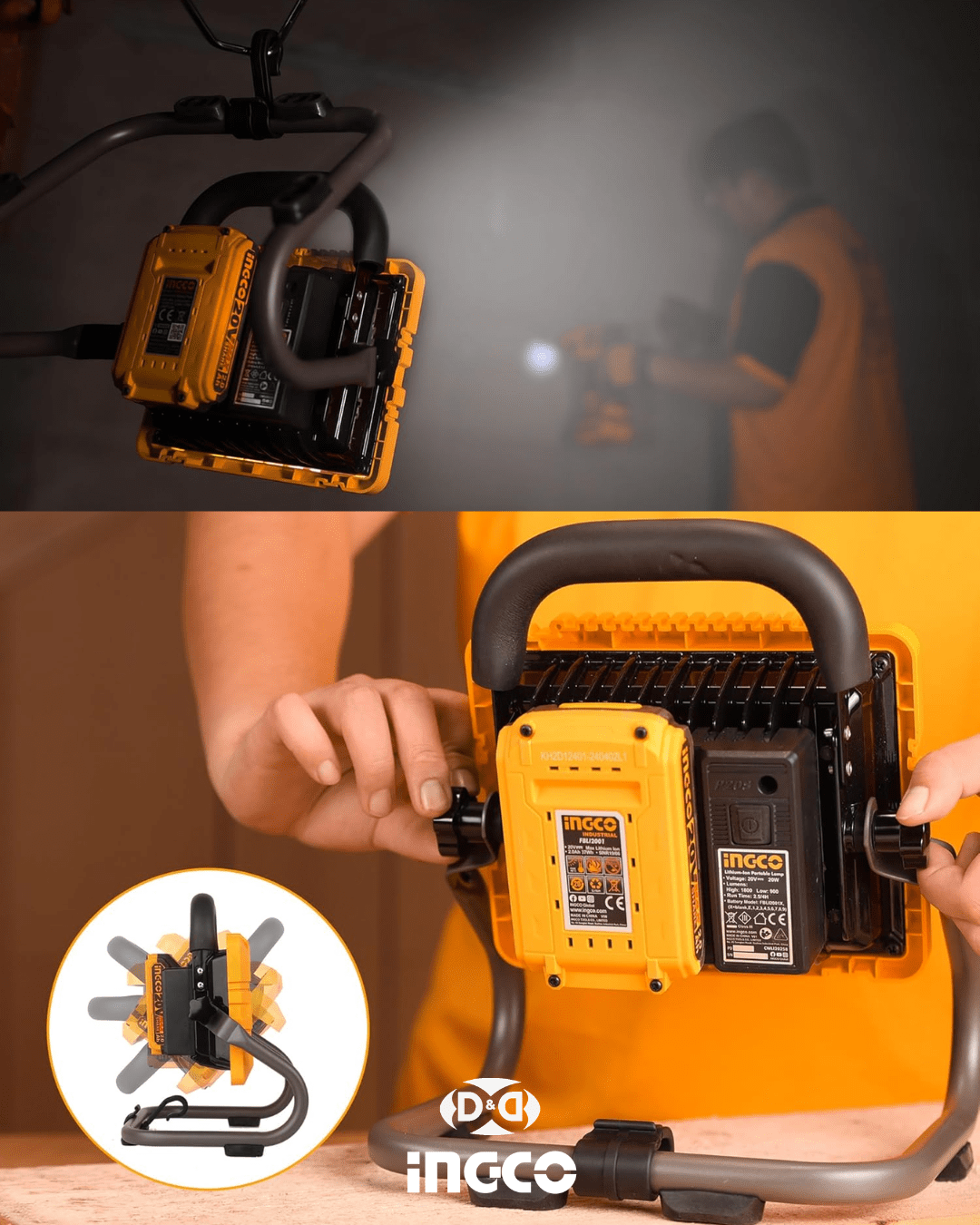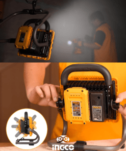 Esta lámpara de trabajo inalámbrica es una herramienta ideal para iluminar espacios de trabajo con eficacia y comodidad. Cuenta con una potente luz LED que proporciona una excelente visibilidad en diversas condiciones. Su diseño inalámbrico, alimentado por una batería de 20V (incluida), permite libertad de movimiento y facilidad de uso en cualquier lugar. Además, tiene un mango ergonómico para un transporte sencillo y un soporte ajustable que facilita la orientación del haz de luz según las necesidades del usuario. Esta lámpara es resistente y duradera, ideal para trabajos de construcción, reparaciones, y otras tareas que requieran una iluminación confiable y portátil.