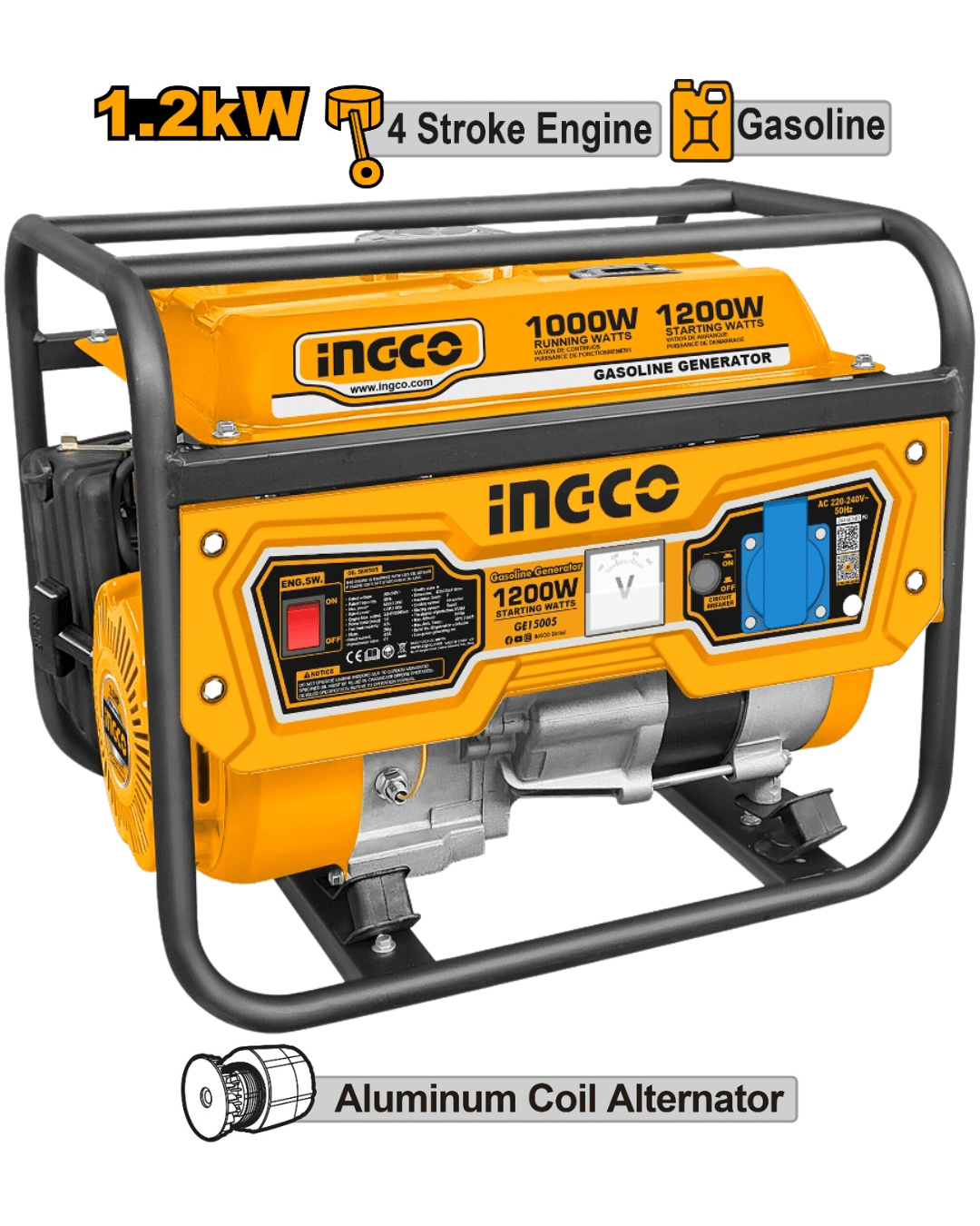 Generador a Gasolina 1.2 kW Monofásico 220V INGCO GE15005
