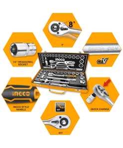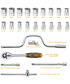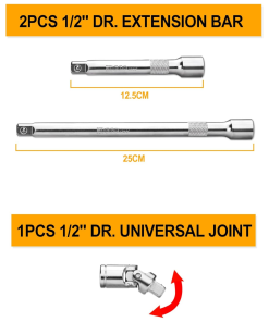 Set completo de dados profesionales, diseñado para trabajos mecánicos exigentes, reparación automotriz y mantenimiento en general. Fabricado en acero cromo vanadio (CR-V) para máxima resistencia y durabilidad, este kit ofrece una amplia variedad de medidas y accesorios, todo organizado en una resistente caja metálica que facilita el transporte y almacenamiento. Ideal para talleres, mecánicos y aficionados que buscan calidad y eficiencia en sus herramientas.