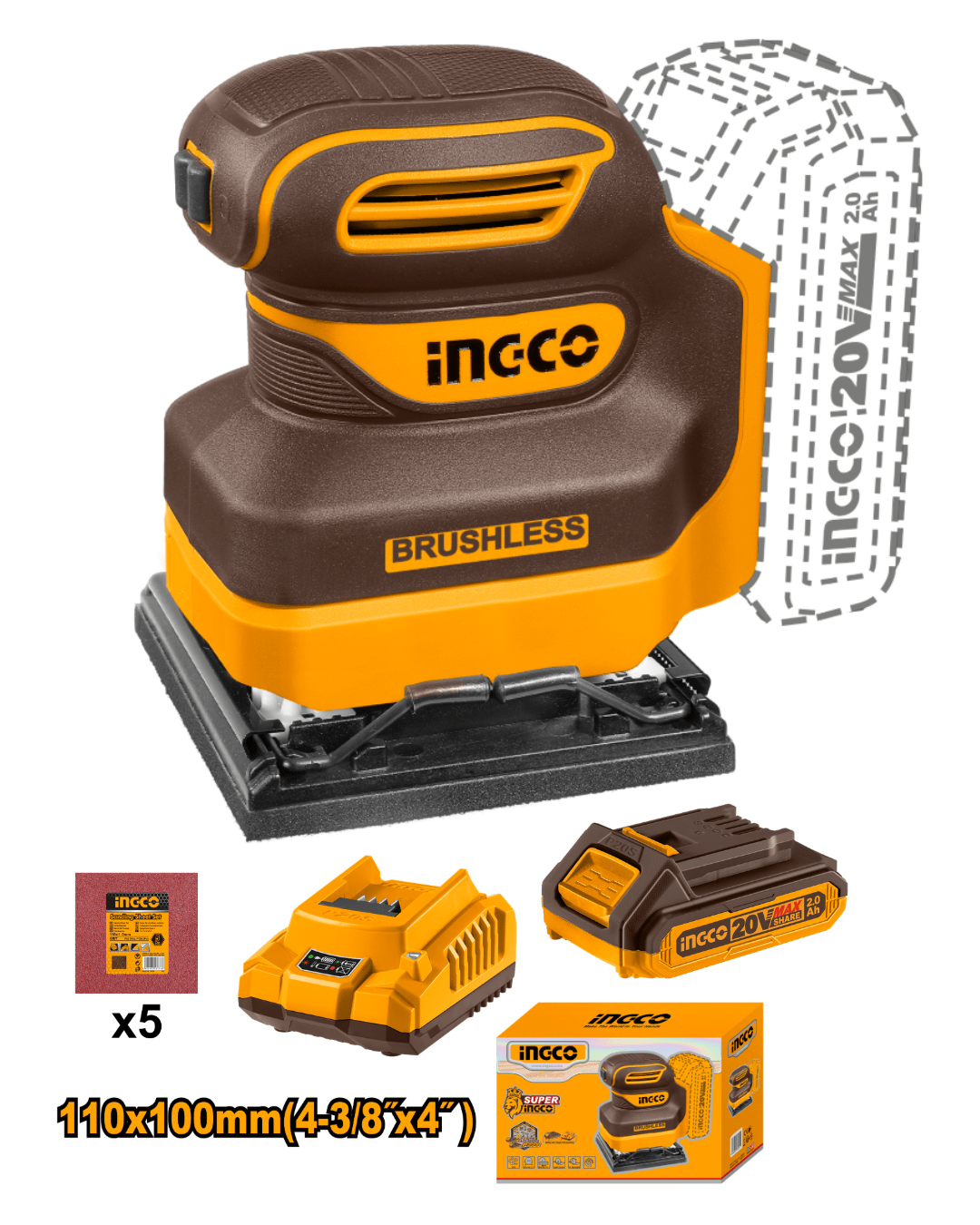 Lijadora Orbital Inalámbrica + Batería 2AH + Cargador INGCO CSHSLI20241