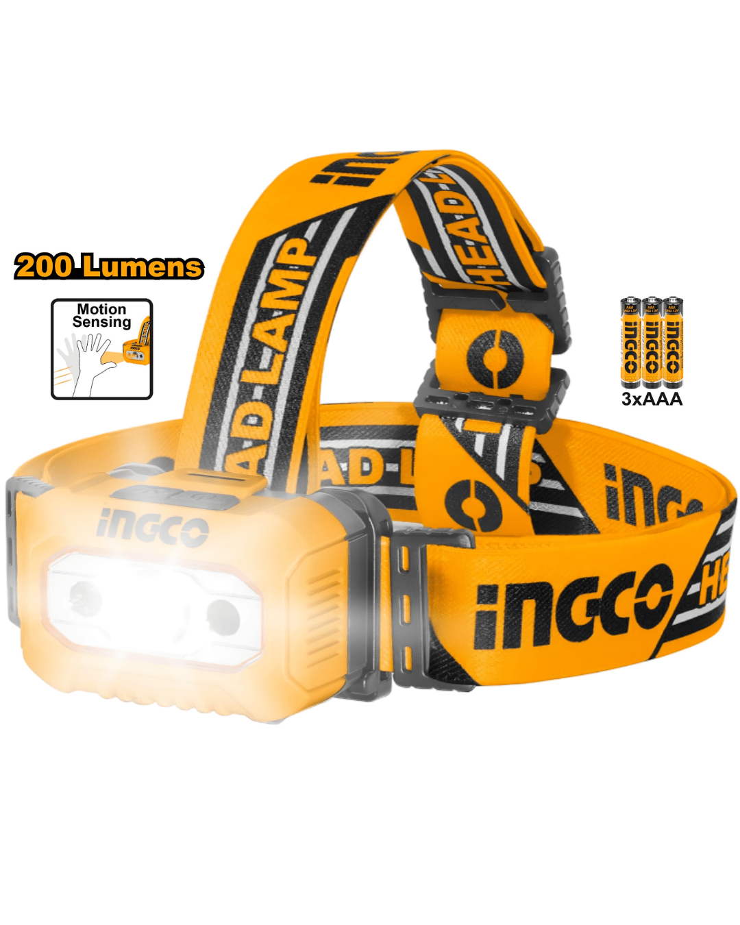 Linterna Frontal Vincha Minera LED 200 Lúmenes con Sensor de Movimiento INGCO HHL013AAA8