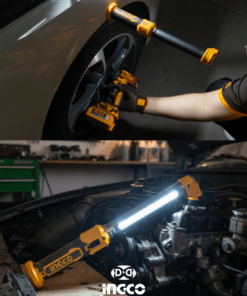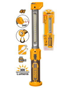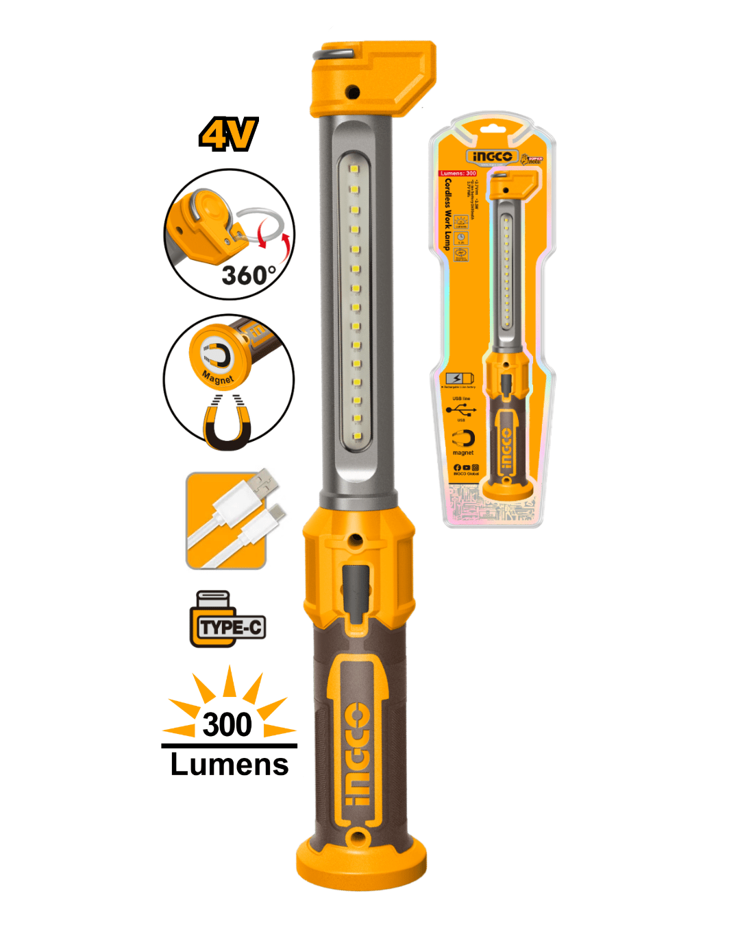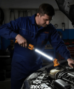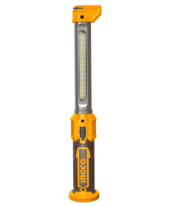 Lámpara de trabajo recargable diseñada para brindar iluminación eficiente y portátil en talleres, mecánica y trabajos en terreno. Equipada con batería de polímero de litio y un LED de 3.5W, ofrece una iluminación potente de hasta 300 lúmenes con opción de uso en modo bajo para mayor autonomía. Su base magnética y gancho plegable permiten fijarla fácilmente en superficies metálicas o colgarla según la necesidad, facilitando el trabajo en espacios reducidos o con baja visibilidad.