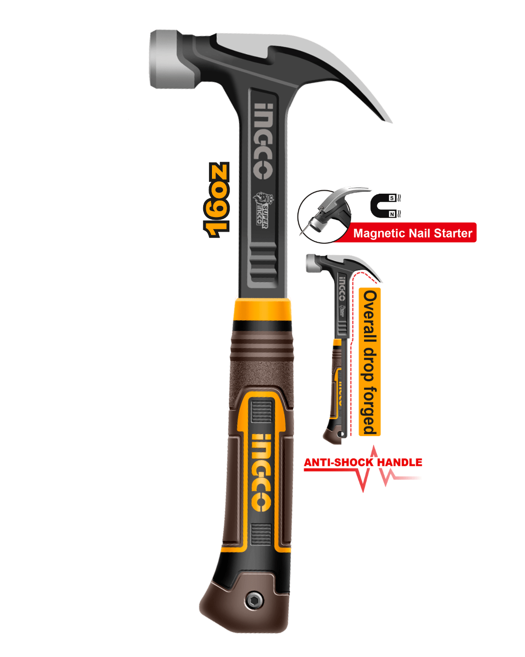 Herramienta de alta calidad, ideal para profesionales que requieren precisión, fuerza y confort en sus proyectos. Con un peso de 16 onzas (450 gramos) y una longitud de 345 mm, está diseñado para realizar trabajos exigentes con eficacia. Su cabezal forjado en caliente con acero al carbono 45# garantiza una resistencia superior, mientras que la función magnética para clavos facilita su uso. Además, este martillo cuenta con un mango ergonómico anti-shock de tres colores, que reduce las vibraciones y proporciona un agarre cómodo y seguro durante el trabajo prolongado.