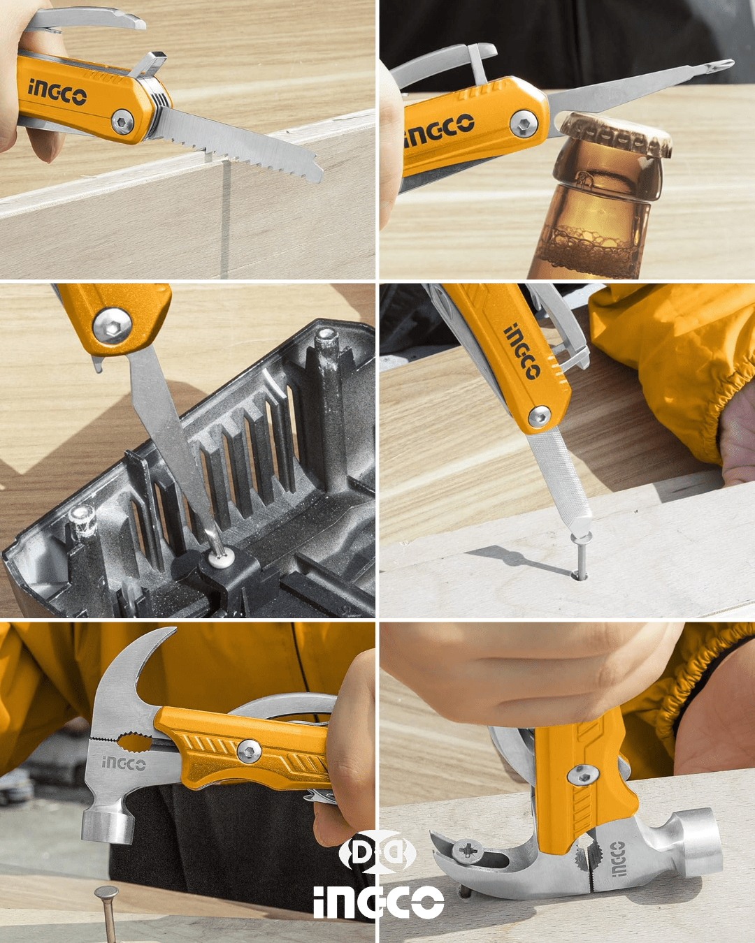 Herramienta multifuncional de bolsillo diseñada para ofrecer versatilidad y eficiencia en una sola pieza compacta. Con 12 funciones integradas, este martillo multiherramienta es ideal para campamentos, reparaciones rápidas, bricolaje o emergencias en el hogar. Su mango de aluminio resistente proporciona durabilidad y un agarre firme, mientras que su diseño portátil lo convierte en una solución práctica y confiable para múltiples necesidades.