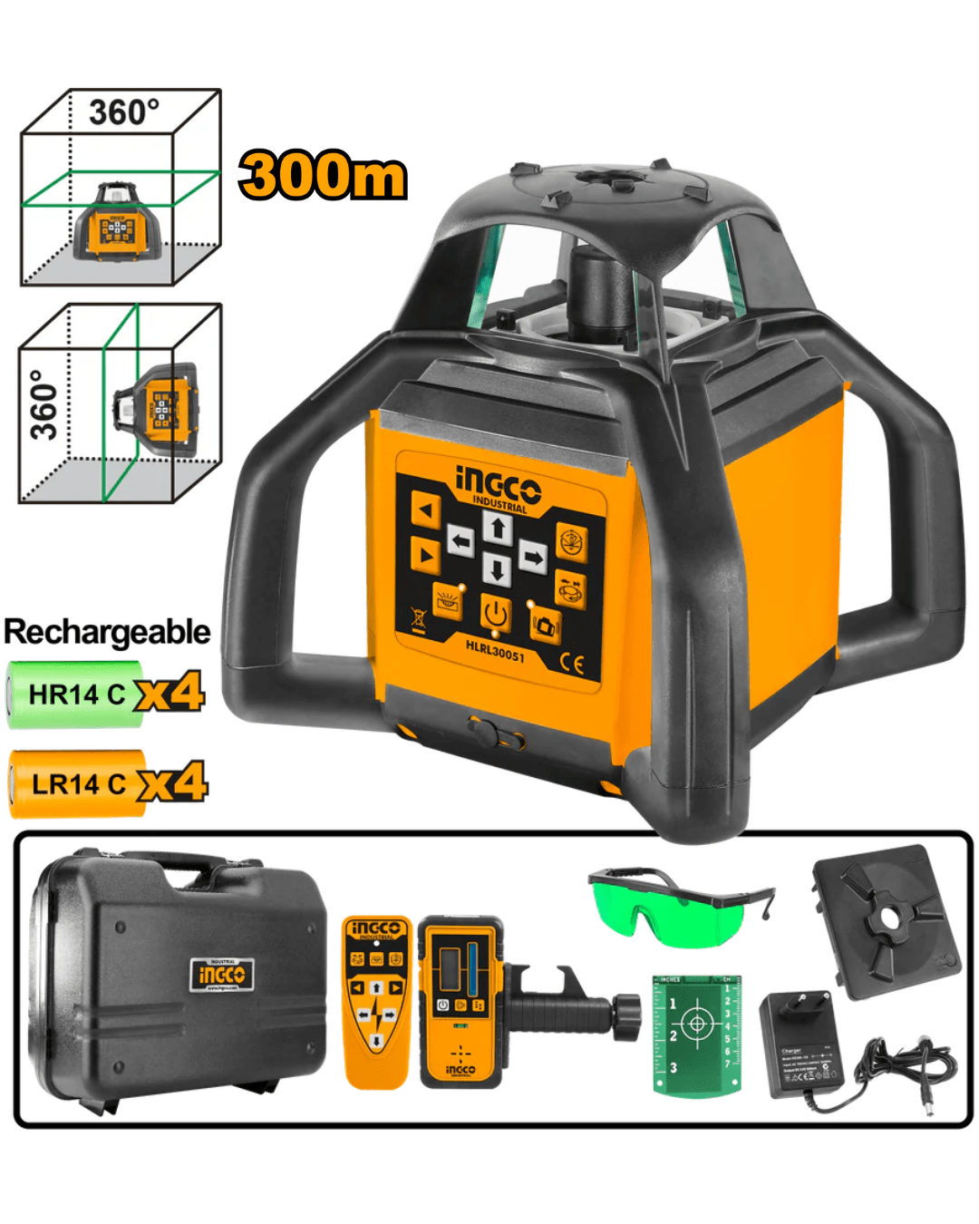 Nivel Láser Rotativo Verde con Control Remoto y Autonivelación INGCO HLRL30051