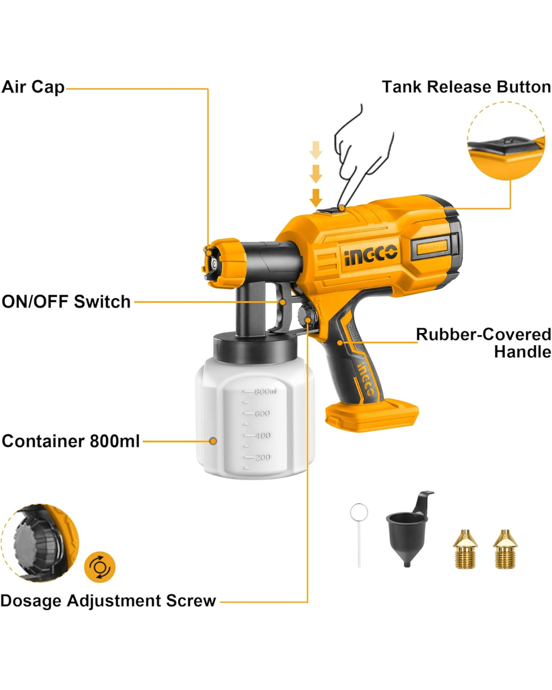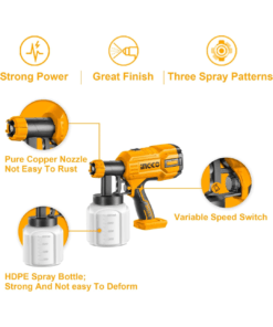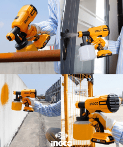 Herramienta versátil y eficiente diseñada para facilitar proyectos de pintura en diversas superficies. Su diseño sin cables proporciona una gran comodidad, eliminando las limitaciones de longitud de cable y permitiendo su uso en una amplia gama de aplicaciones, desde la pintura de paredes hasta muebles y el riego de jardines.