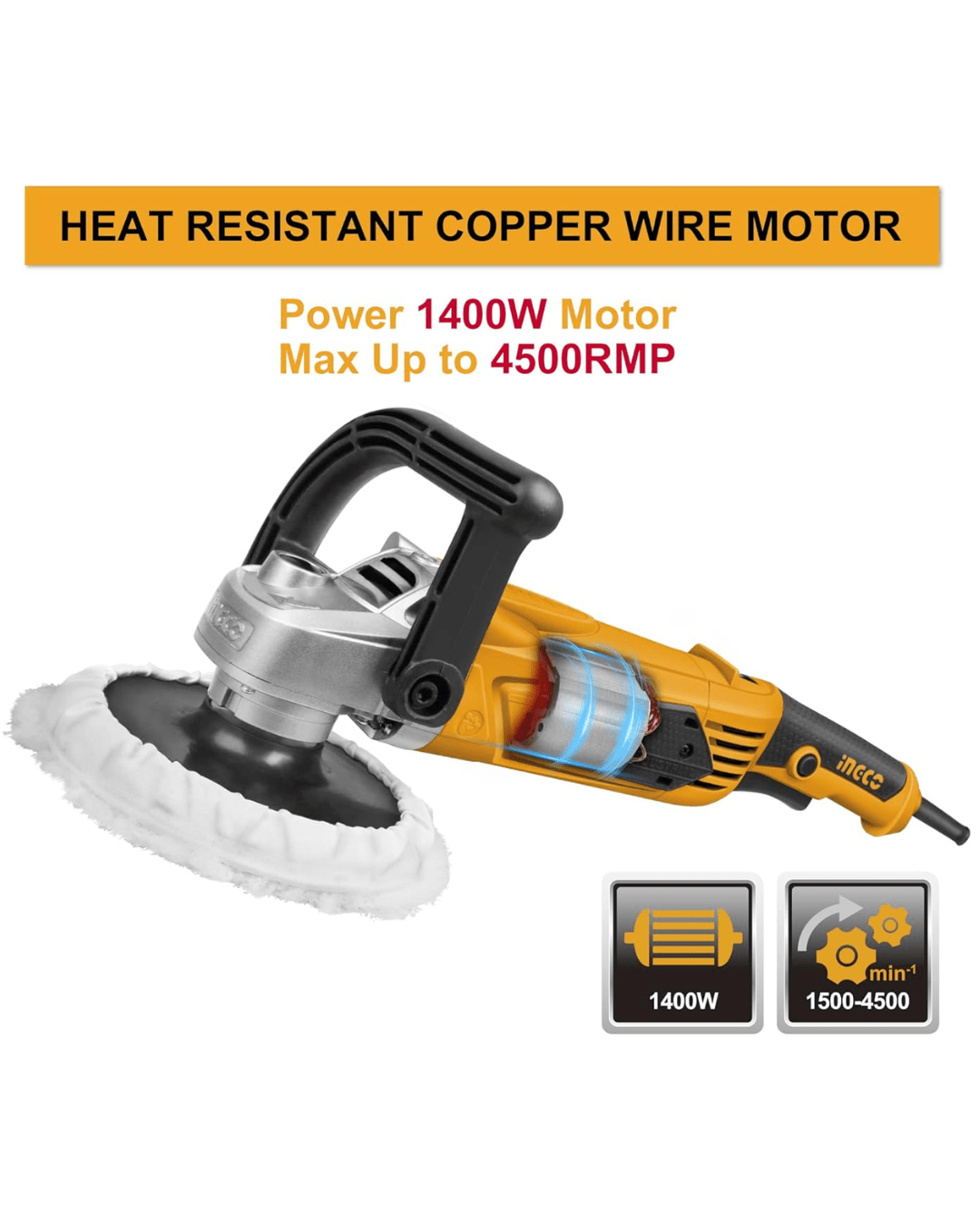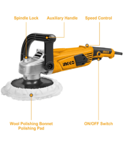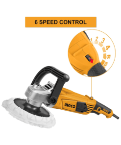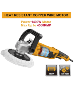 Herramienta versátil y potente, ideal para el pulido y lijado de superficies. Cuenta con un motor de 1400W que proporciona una velocidad sin carga de 900-3800 RPM, ajustable según las necesidades del usuario. Está equipada con un disco de pulido de 180mm de diámetro y un sistema de control de velocidad variable, lo que la hace adecuada para tareas de pulido y lijado tanto en vehículos como en superficies diversas. Su caja de engranajes de aluminio asegura durabilidad, y el mango ergonómico con interruptor de bloqueo facilita su uso continuo. Incluye una almohadilla de pulido, un bonnet de pulido y un set de cepillos de carbón de repuesto.