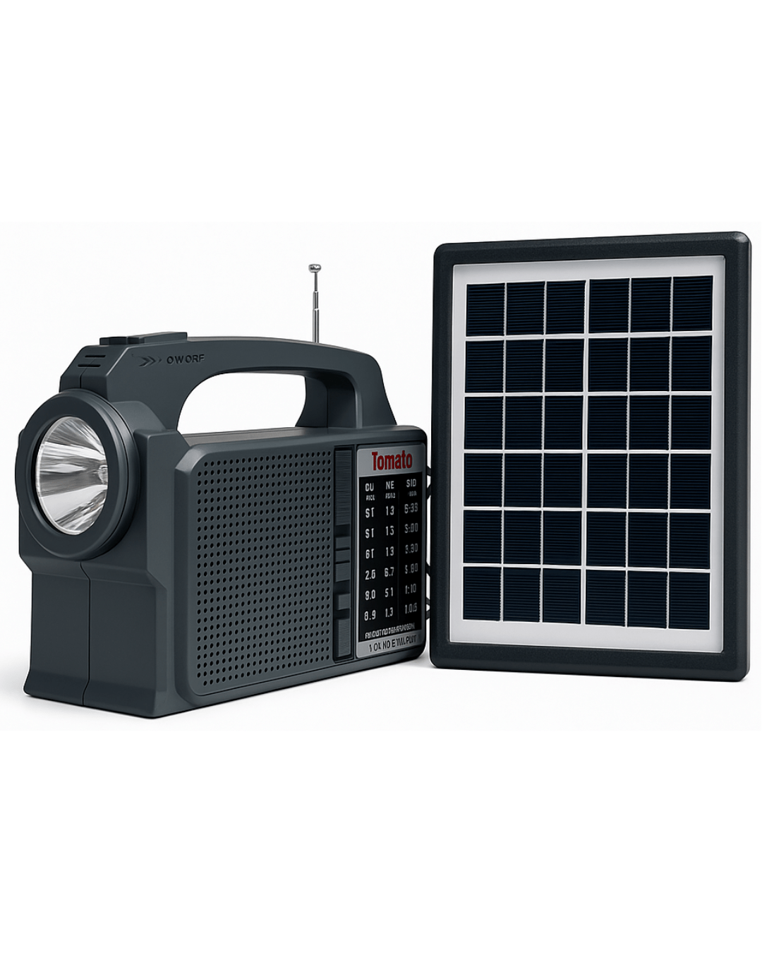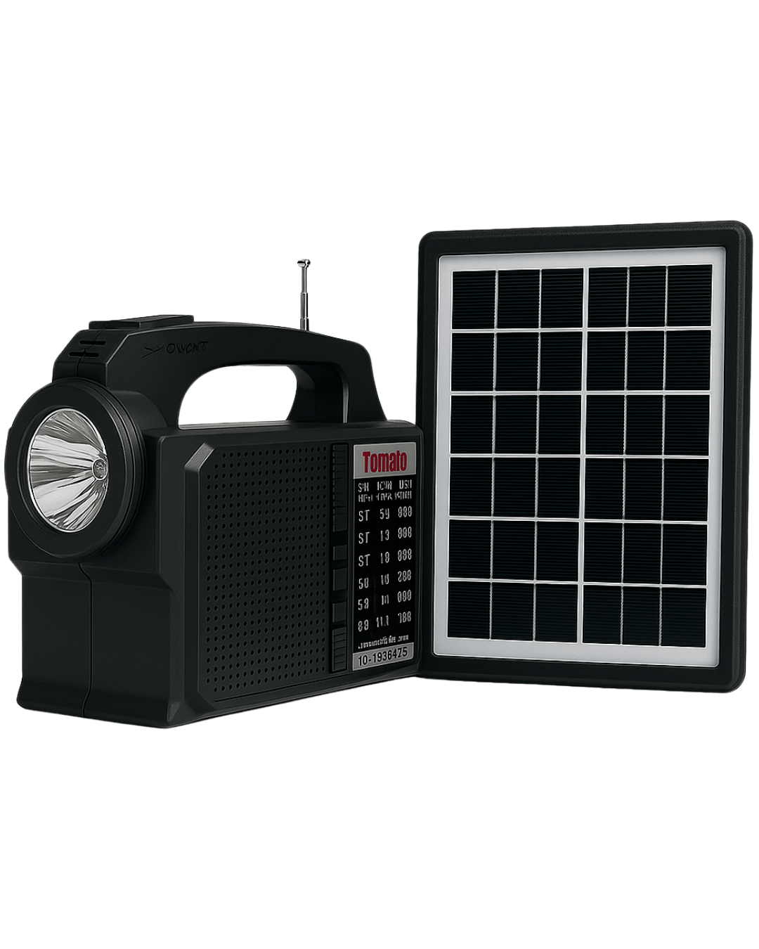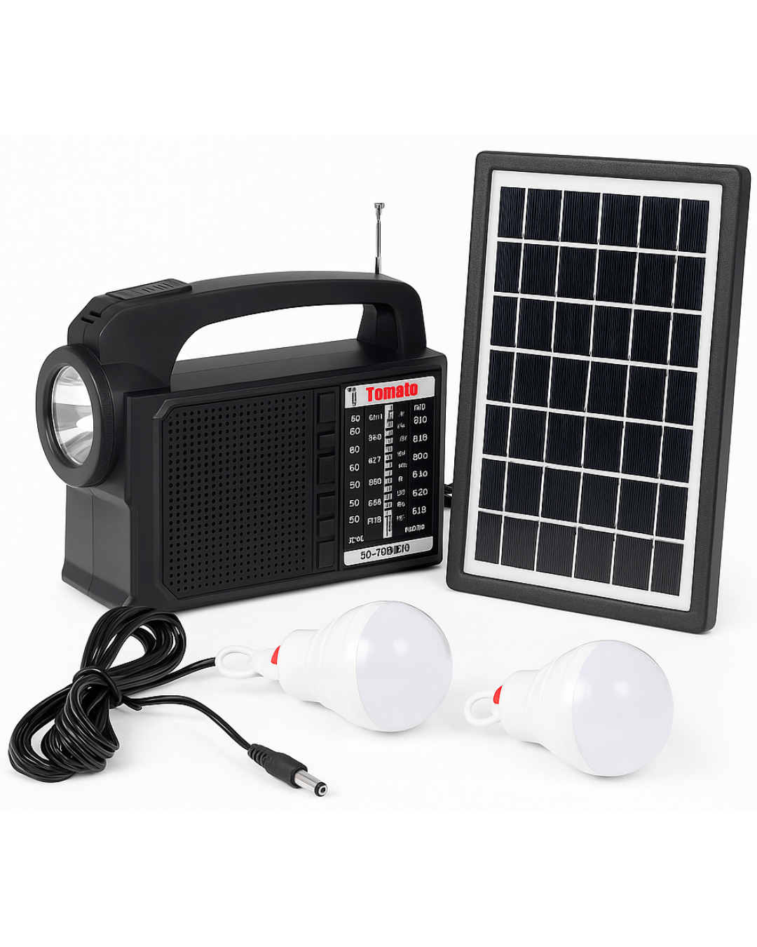 Radio Tomate Solar Recargable Con Linterna LED, Panel Solar y 2 Ampolletas