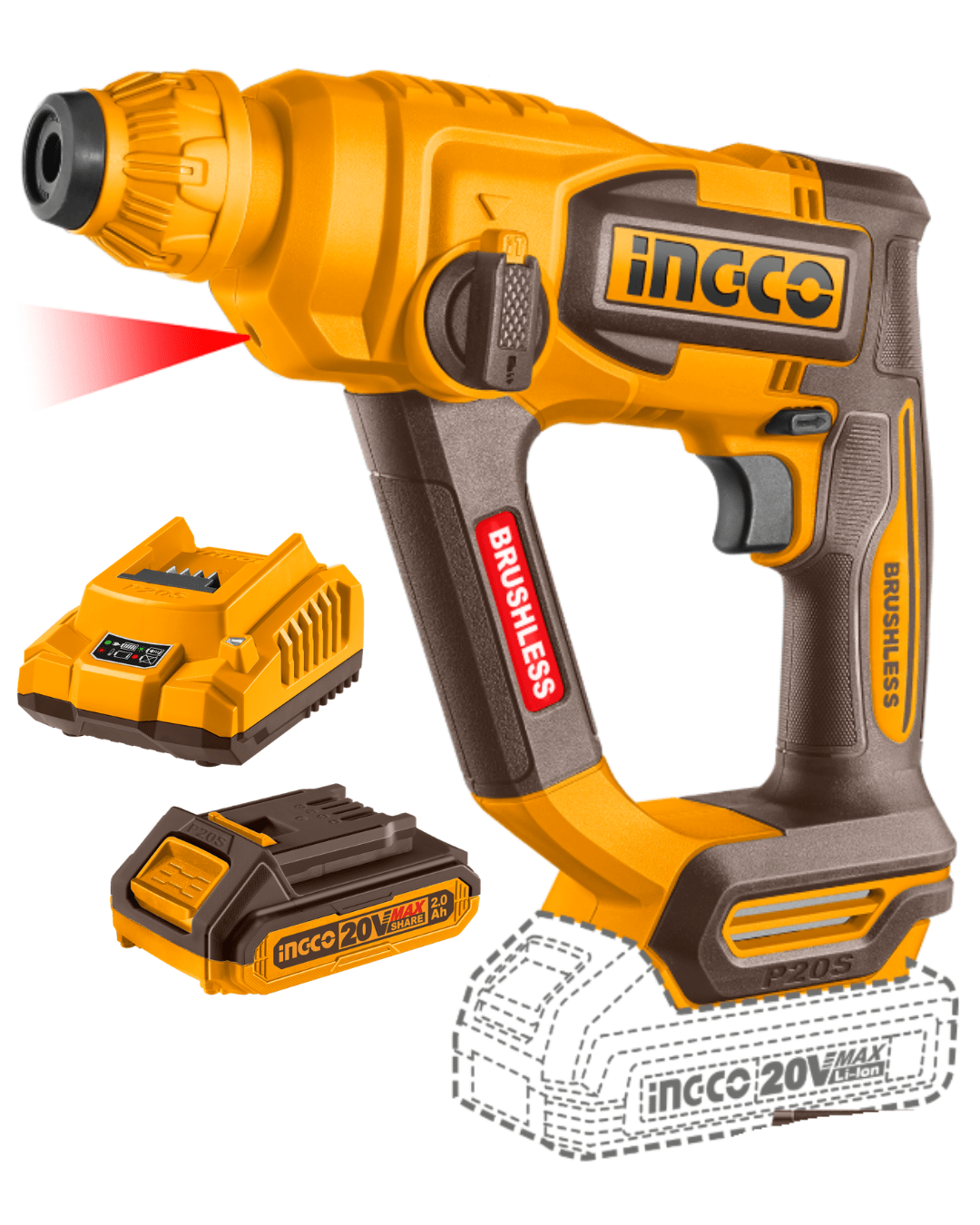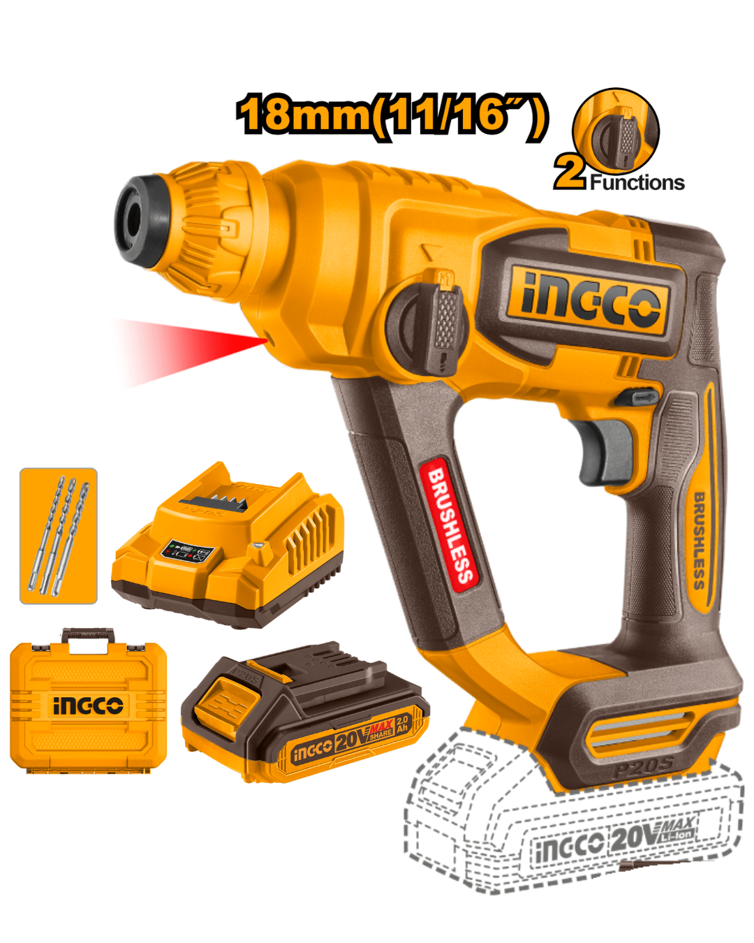 Rotomartillo Inalámbrico 20V SDS Plus 1.8 Joule + Batería 2AH + Cargador INGCO CRHLI201881