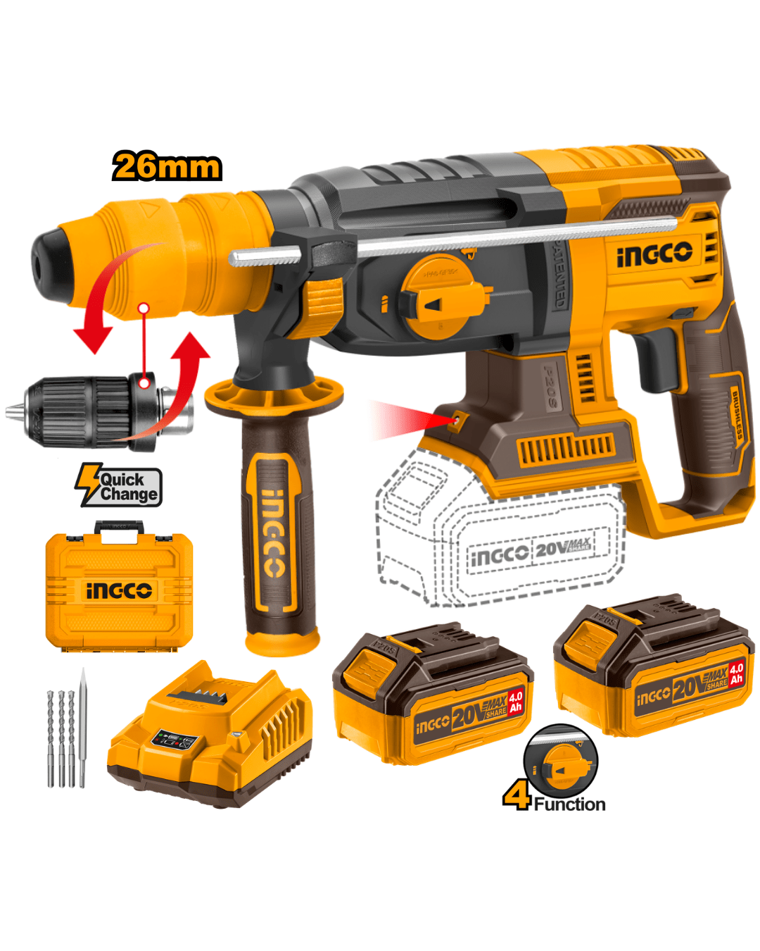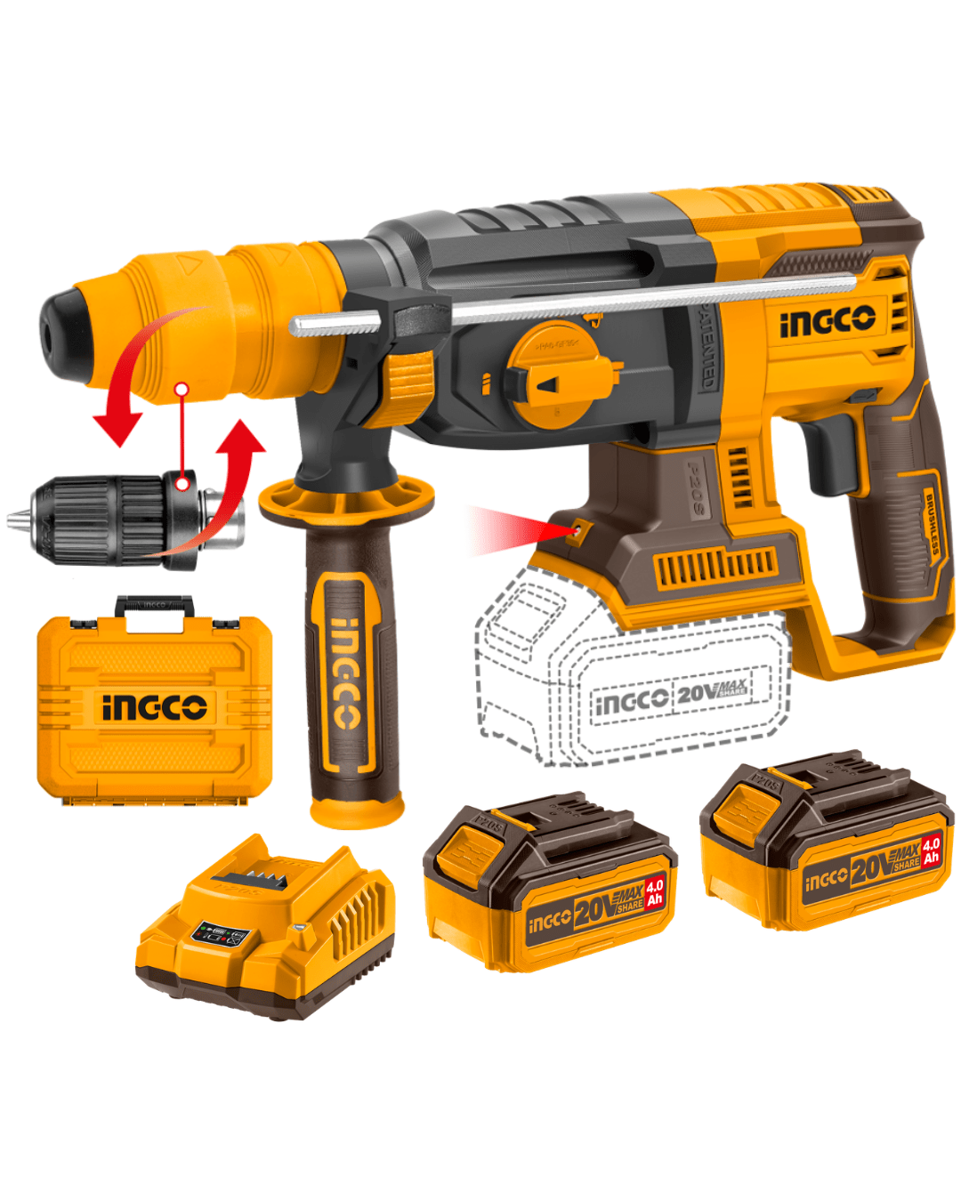 Herramienta profesional de alto rendimiento, diseñada para perforación y demolición en hormigón, madera y metal. Su motor sin carbones (brushless) maximiza la eficiencia, reduciendo el desgaste y prolongando la vida útil del equipo. Gracias a su sistema SDS Plus, permite un cambio rápido y seguro de accesorios, optimizando el tiempo de trabajo. Incorpora un adaptador de mandril rápido sin llave, permitiendo cambiar entre brocas SDS Plus y brocas convencionales de manera rápida y sencilla. Cuenta con cuatro funciones operativas: perforación, perforación con percusión, cincelado y ajuste de posición del cincel, brindando versatilidad para múltiples aplicaciones. Su adaptador de mandril rápido sin llave facilita el uso con brocas convencionales. La luz LED integrada mejora la visibilidad en entornos de poca iluminación.