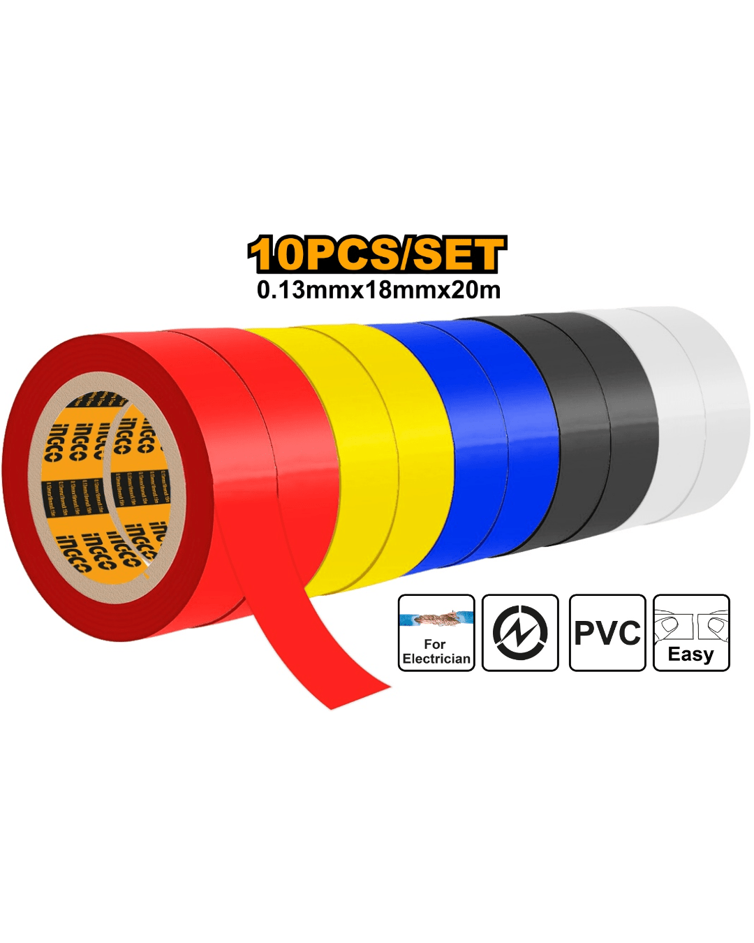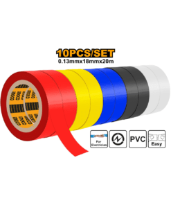 El set de 10 cintas aisladoras de colores variados es ideal para aplicaciones eléctricas y de bricolaje, permitiendo una excelente identificación y organización de cables. Estas cintas ofrecen una longitud de 20 metros cada una y están fabricadas con materiales ignífugos y autoextinguibles, garantizando mayor seguridad en su uso. Los colores disponibles (negro, blanco, rojo, amarillo y azul) facilitan la distinción de conexiones. Su diseño con un ancho de 18 mm y un espesor de 0,13 mm asegura resistencia, flexibilidad y un sellado confiable. Este set es práctico y está etiquetado para un almacenamiento eficiente.