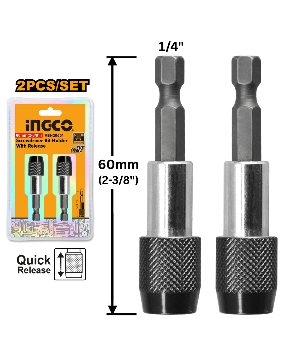 Set de adaptadores de ¼″ diseñados para mejorar el alcance y la compatibilidad en tareas de atornillado. Fabricados en acero de alta resistencia con acabado en cromo-vanadio y cuerpo de aluminio, ofrecen durabilidad, precisión y un acople seguro para puntas y accesorios. Ideales para trabajos de montaje, mantenimiento y uso general en talleres y hogar.