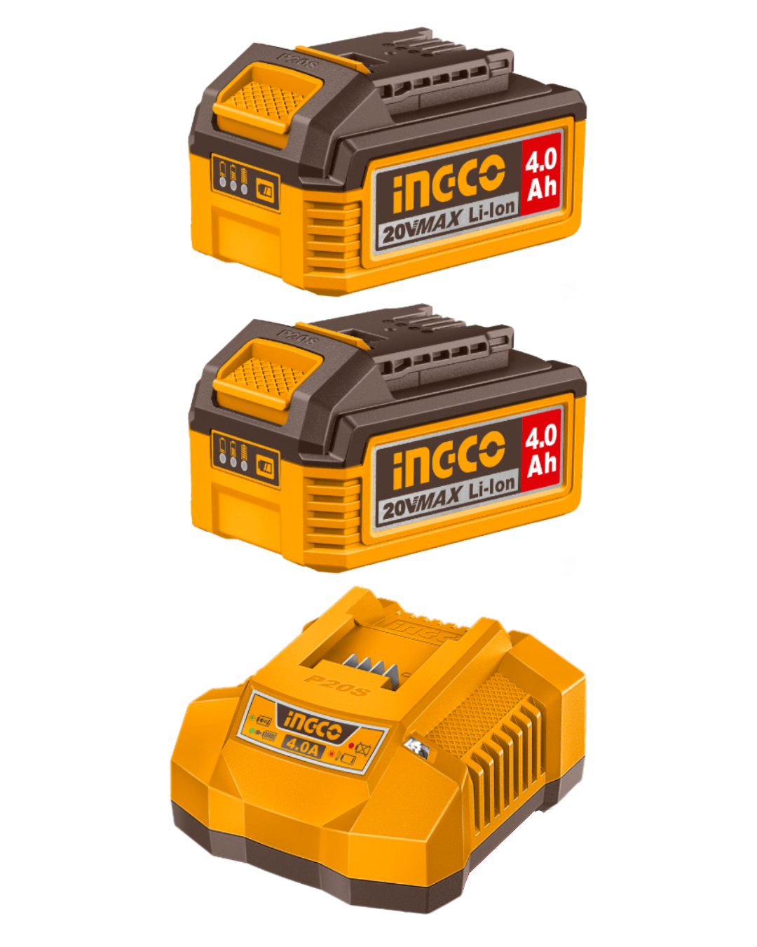 Set 2 Baterías de Litio 20V 4AH + Cargador Rápido INGCO para Línea Múltiple Herramientas FBCPK2013
