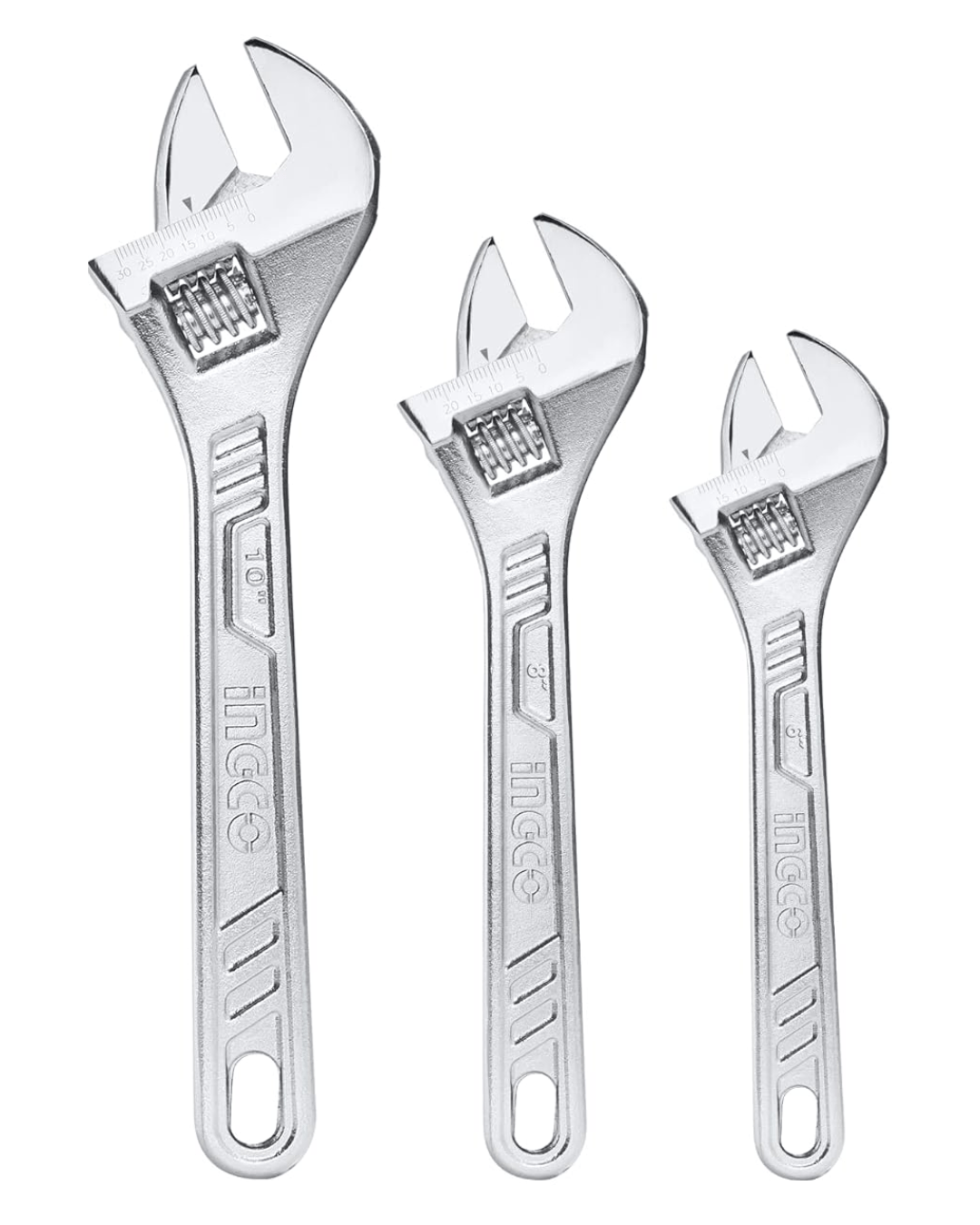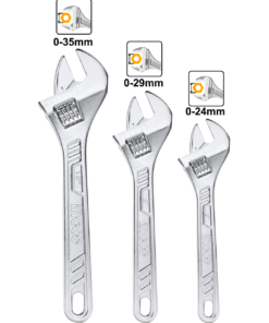 Set versátil de 3 llaves ajustables fabricadas en acero al carbono forjado, ideales para trabajos mecánicos, instalaciones sanitarias, y tareas de mantenimiento en el hogar o taller. Incluye llaves de 6″, 8″ y 10″ con mandíbulas de apertura variable y escala de medición integrada para mayor precisión. Su mango ergonómico y antideslizante proporciona comodidad y firmeza durante el uso. Perfectas para ajustarse a una amplia gama de tuercas y pernos.
