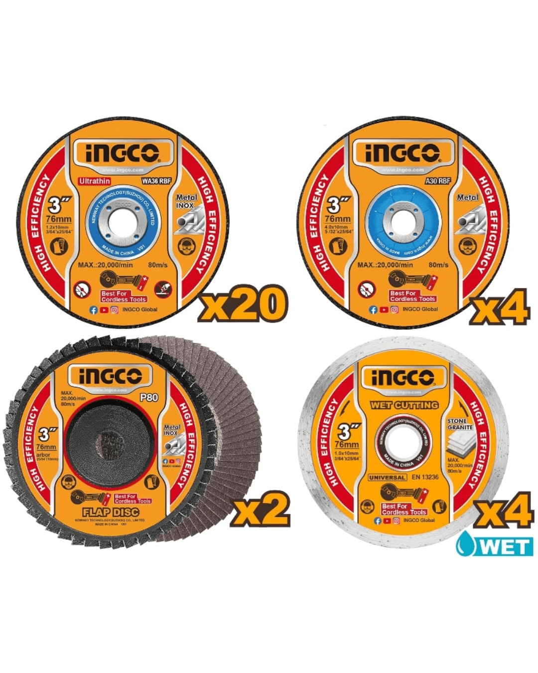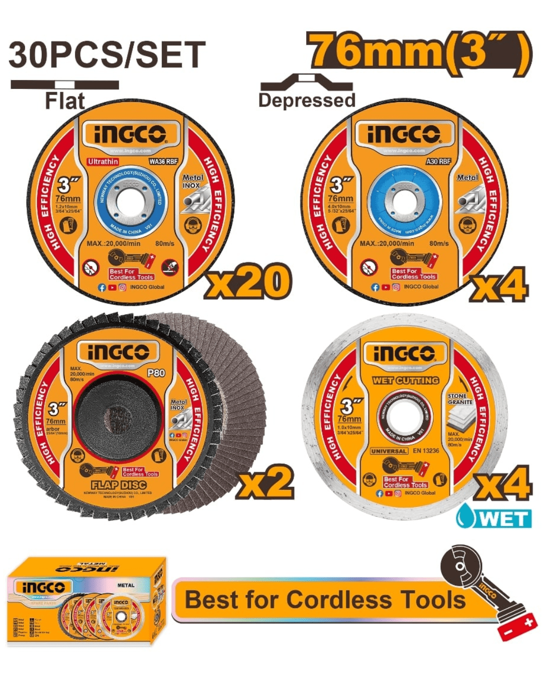 Set de 30 Discos para Mini Amoladora 3” INGCO MCD07630