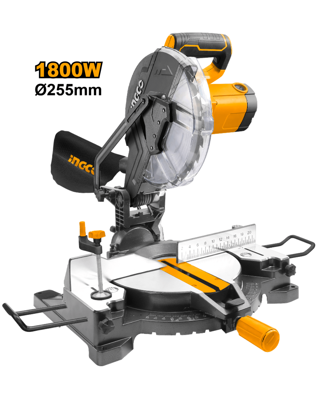 Sierra ingletadora potente y precisa con motor de 1800W, ideal para trabajos exigentes de corte en madera, perfiles y molduras. Su disco de 10″ (255 mm) y alta velocidad de 5.500 rpm permiten cortes limpios y eficientes. Incorpora guía láser para cortes exactos y brazo extensible para piezas largas. Diseñada para carpinteros, instaladores y usuarios profesionales que necesitan rendimiento y precisión en cortes a diferentes ángulos.