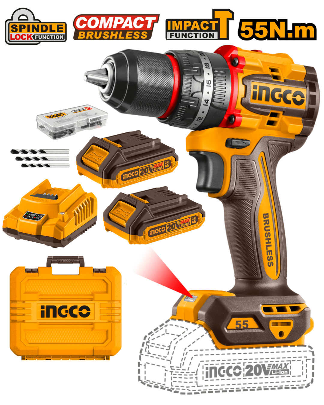 Este atornillador percutor compacto a batería de 20V es una herramienta versátil y potente, diseñada para facilitar tareas de perforación y atornillado en diversos materiales. Su motor sin carbones (brushless) ofrece mayor eficiencia y durabilidad, mientras que su diseño compacto y ergonómico garantiza comodidad durante su uso. Este equipo incluye dos baterías de 2 AH, un cargador rápido y una amplia gama de accesorios, todo organizado en una práctica valija para su fácil transporte y almacenamiento.