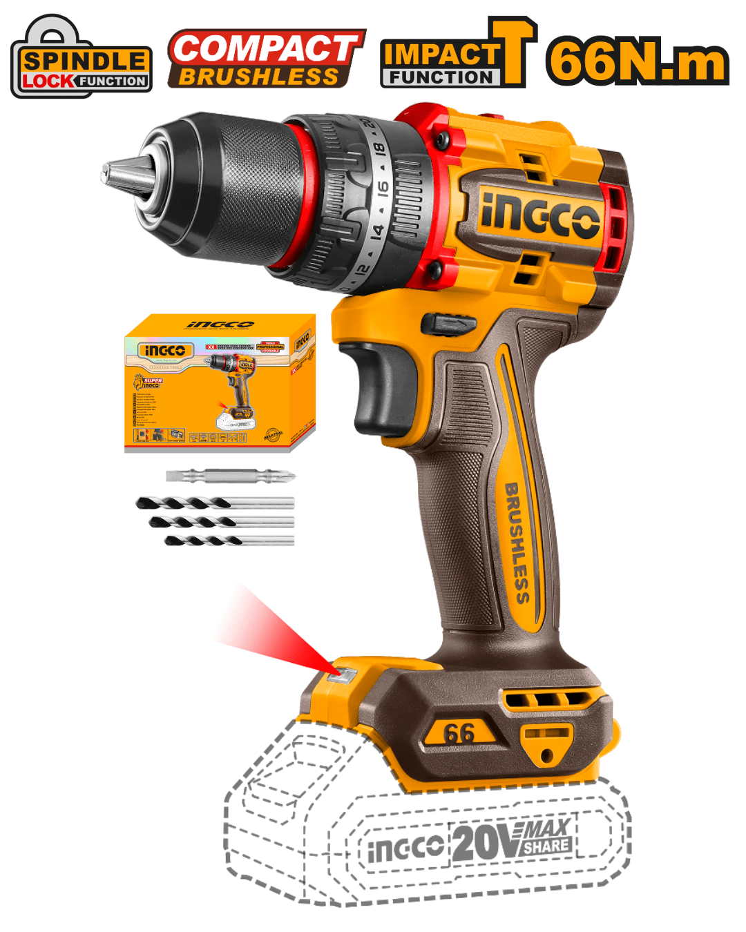 Herramienta profesional diseñada para ofrecer alto rendimiento y versatilidad en tareas de perforación, atornillado y perforación con percusión. Equipado con un motor sin escobillas (brushless), proporciona mayor eficiencia y durabilidad. Su diseño compacto y ergonómico, junto con características como luz LED integrada y engranaje mecánico de 2 velocidades, lo hacen ideal para trabajos en diversos materiales.