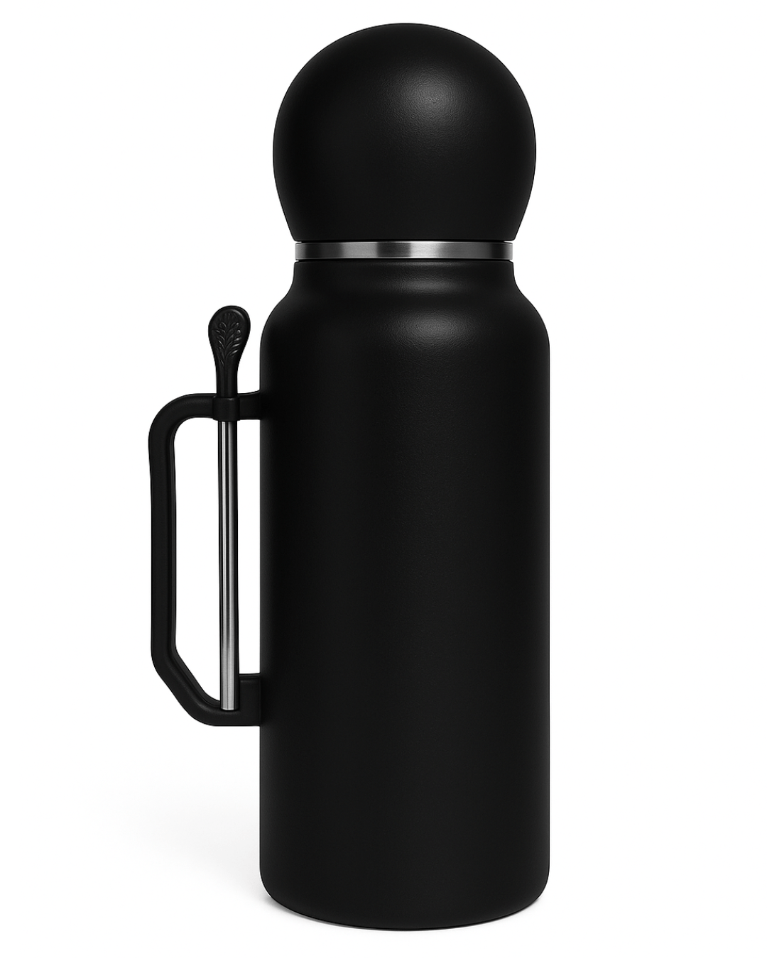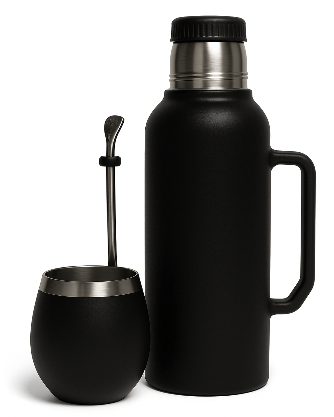 Set de Termo de Acero Inoxidable 1300ml para Bebidas Calientes y Frías con Mate y Bombilla Kimstar