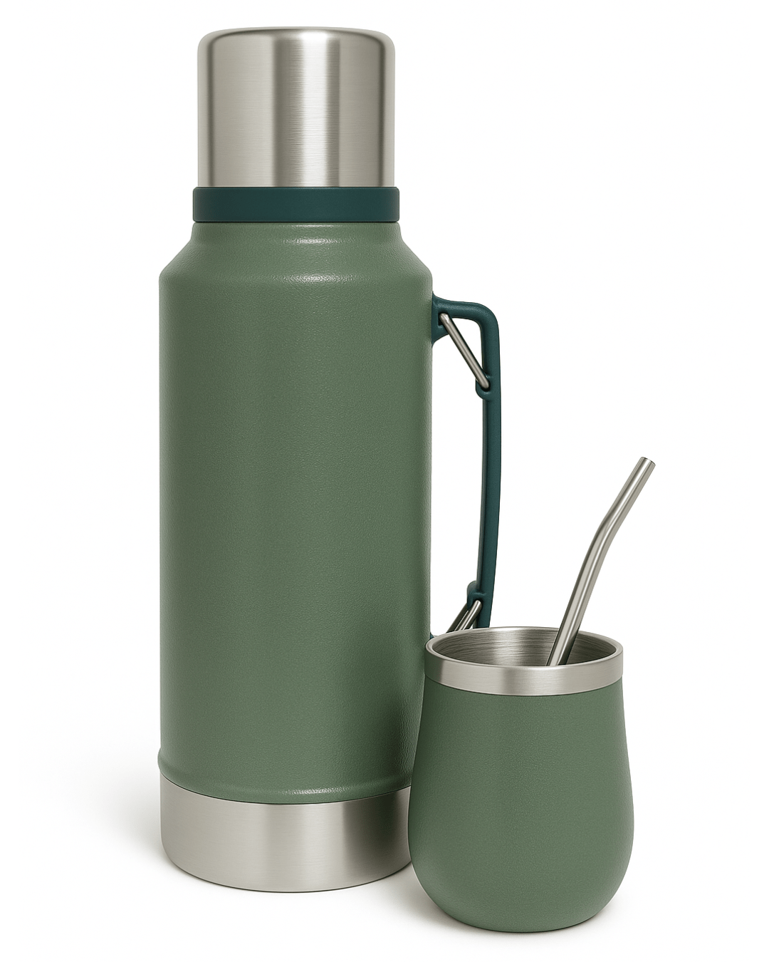 Termo Mate Verde Acero Inoxidable con Vaso y Bombilla 1L + 260mL